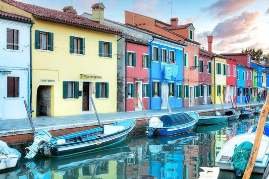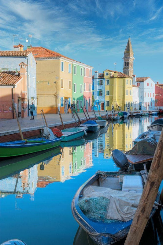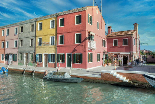 Venetian Canale #15 White Modern Wood Framed Art Print with Double Matting by Blaustein, Alan