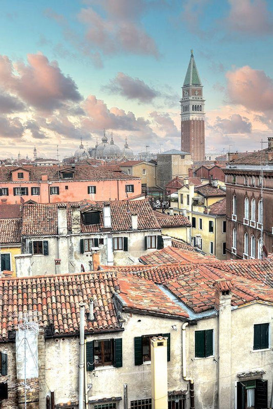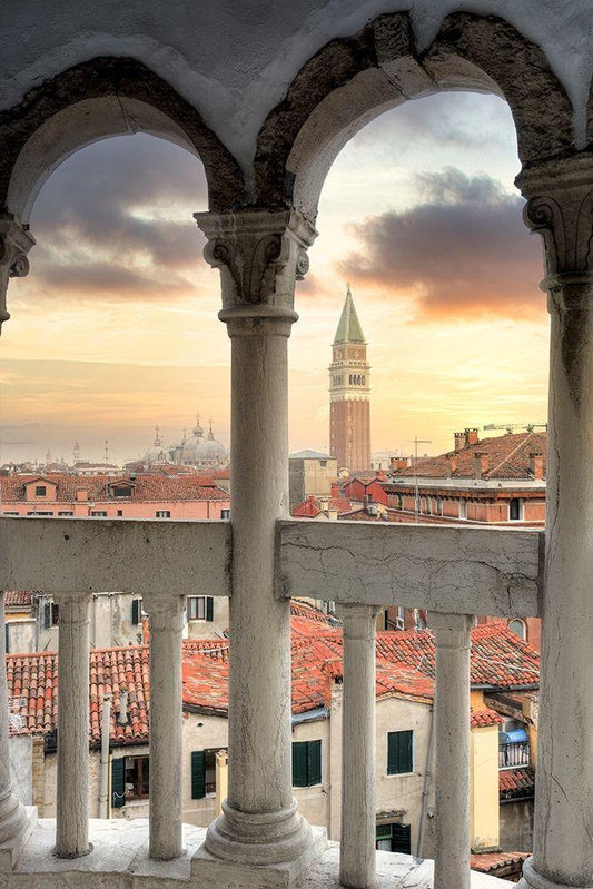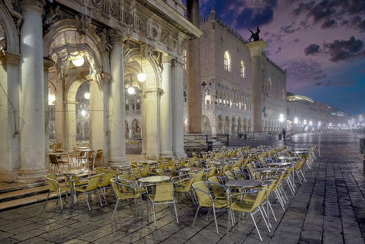 Piazza San Marco Sunrise #18 White Modern Wood Framed Art Print with Double Matting by Blaustein, Alan