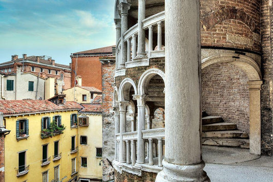 Scala Contarini del Bovolo #1 White Modern Wood Framed Art Print with Double Matting by Blaustein, Alan