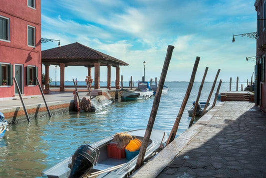 Venetian Canale #17 White Modern Wood Framed Art Print with Double Matting by Blaustein, Alan