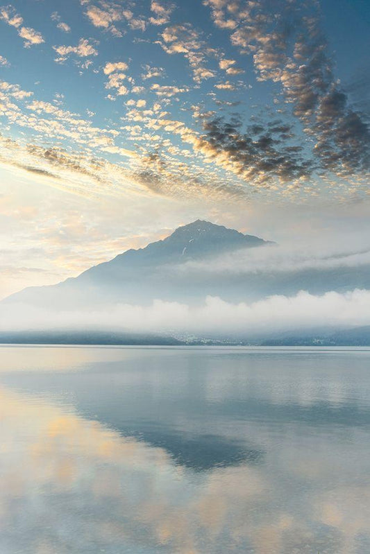 Gravedona Harbor Sunrise #2 White Modern Wood Framed Art Print with Double Matting by Blaustein, Alan