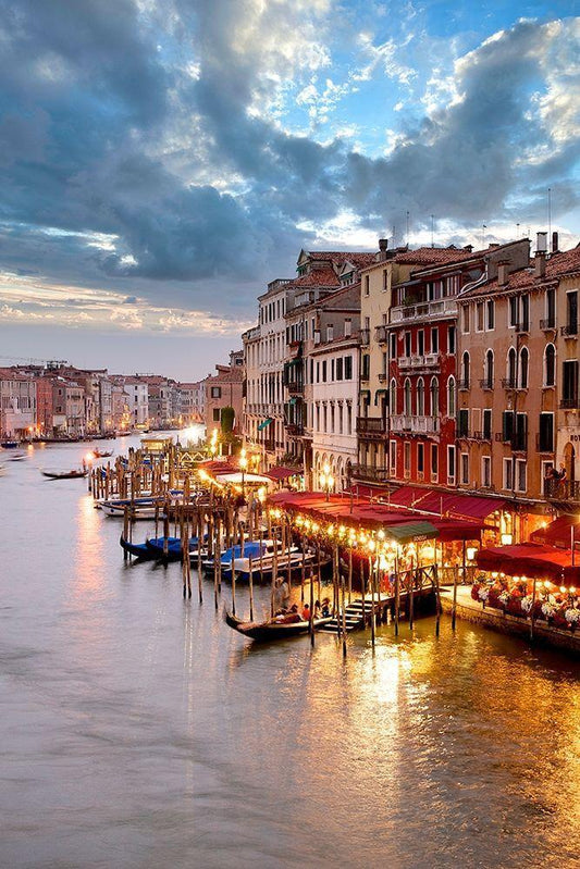 Grande Canal Vista At Dusk #1 White Modern Wood Framed Art Print with Double Matting by Blaustein, Alan