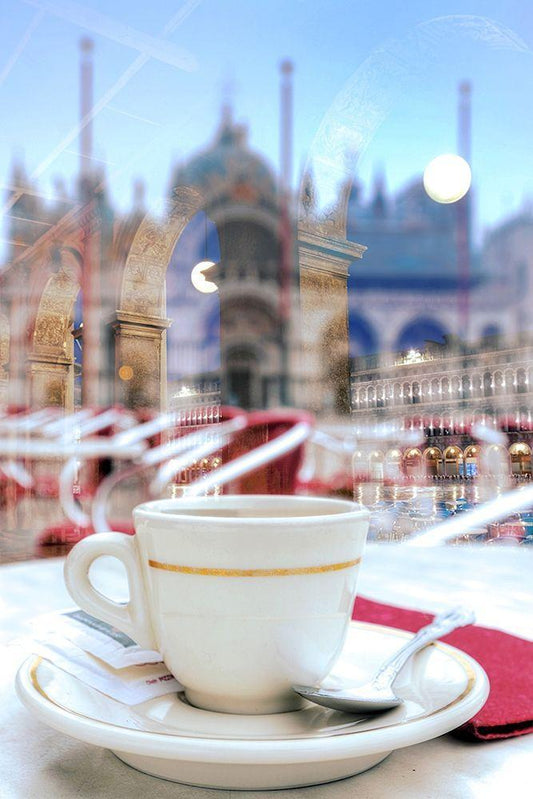 Caffe Macchiato Lucca #2 White Modern Wood Framed Art Print with Double Matting by Blaustein, Alan