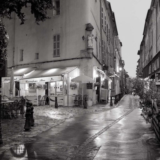 Carrefour Bistro White Modern Wood Framed Art Print with Double Matting by Blaustein, Alan