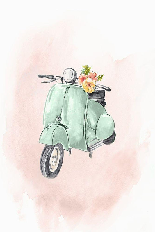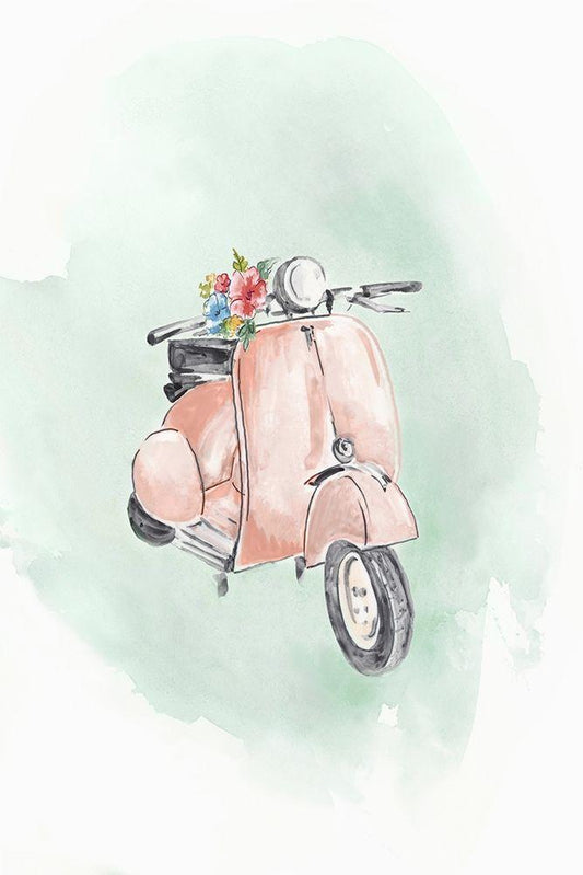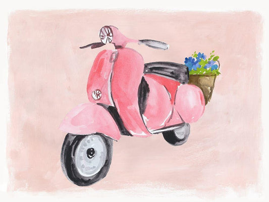 Coral Bike White Modern Wood Framed Art Print with Double Matting by Watts, Eva