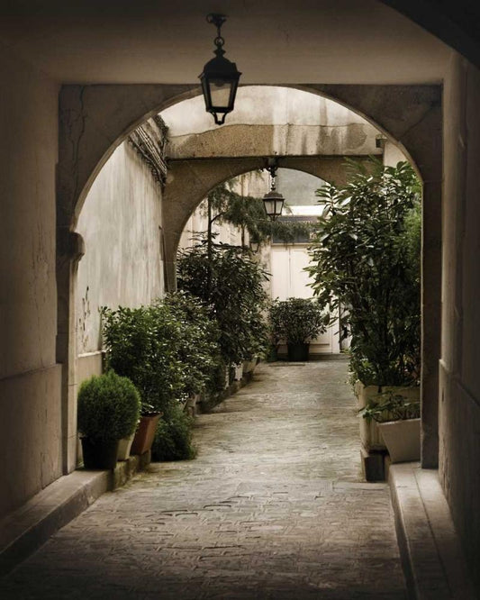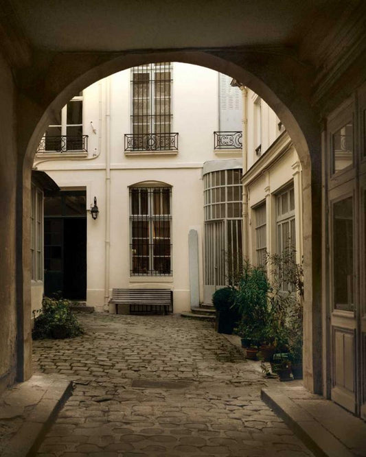 Marais Courtyard White Modern Wood Framed Art Print with Double Matting by White, Milla