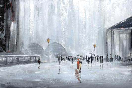 La Gare White Modern Wood Framed Art Print with Double Matting by Kadmiri, Aziz