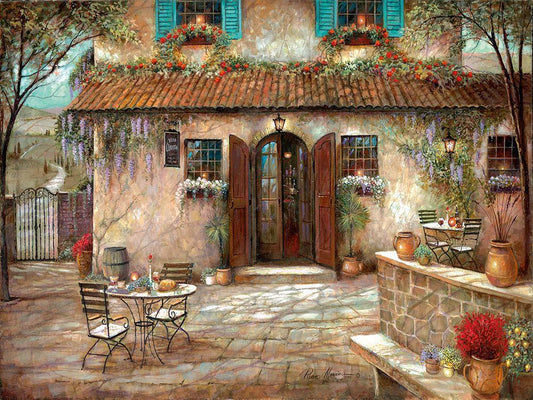 La Cafe de Rue White Modern Wood Framed Art Print with Double Matting by Nan