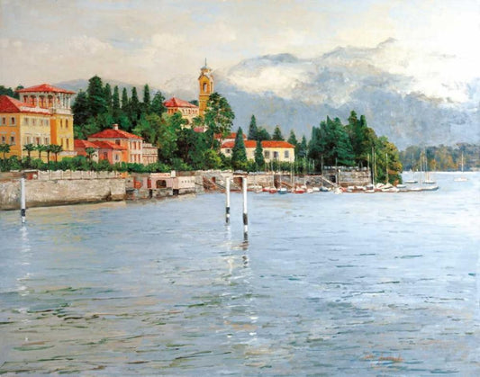 Lake Como White Modern Wood Framed Art Print with Double Matting by Swatland, Sally