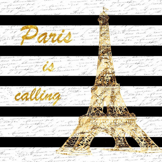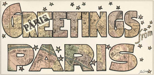 Greetings From Paris White Modern Wood Framed Art Print with Double Matting by Carlson, Tina
