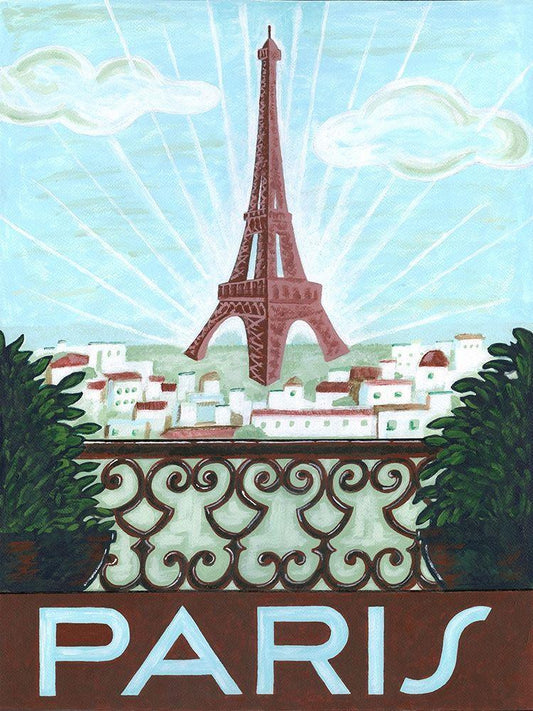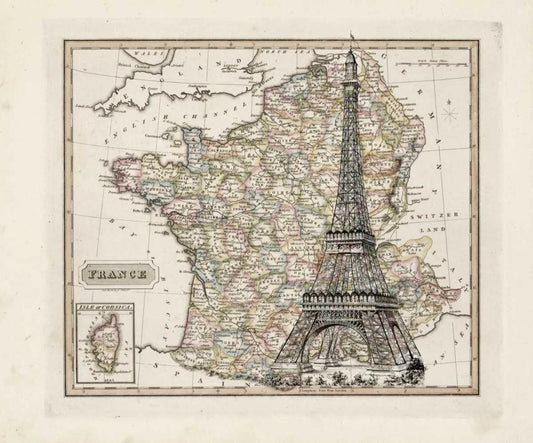 Eiffel Tower Map White Modern Wood Framed Art Print with Double Matting by Carlson, Tina