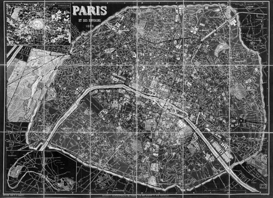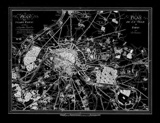 Paris Map BW White Modern Wood Framed Art Print with Double Matting by Carlson, Tina