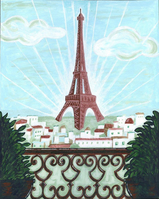 Paris View White Modern Wood Framed Art Print with Double Matting by Reaves, Thom