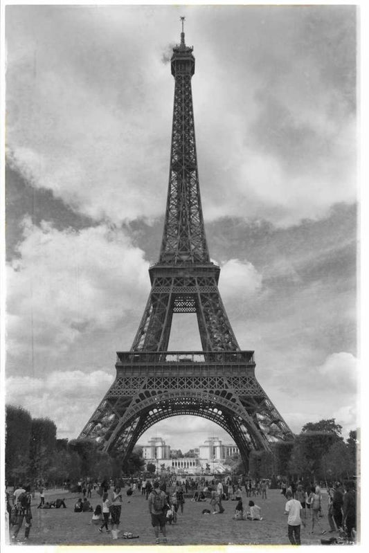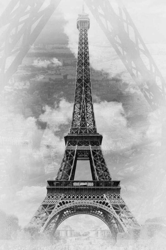 Love And Paris BW White Modern Wood Framed Art Print with Double Matting by Lewis, Sheldon