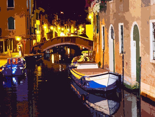 Gondola Night White Modern Wood Framed Art Print with Double Matting by Ghanooni, Sarah