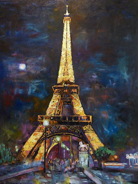 Golden Eiffel White Modern Wood Framed Art Print with Double Matting by Ghanooni, Sarah