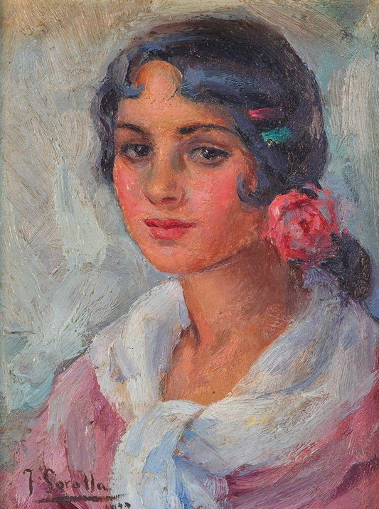Portrait of a Woman White Modern Wood Framed Art Print with Double Matting by Sorolla, Joaquin