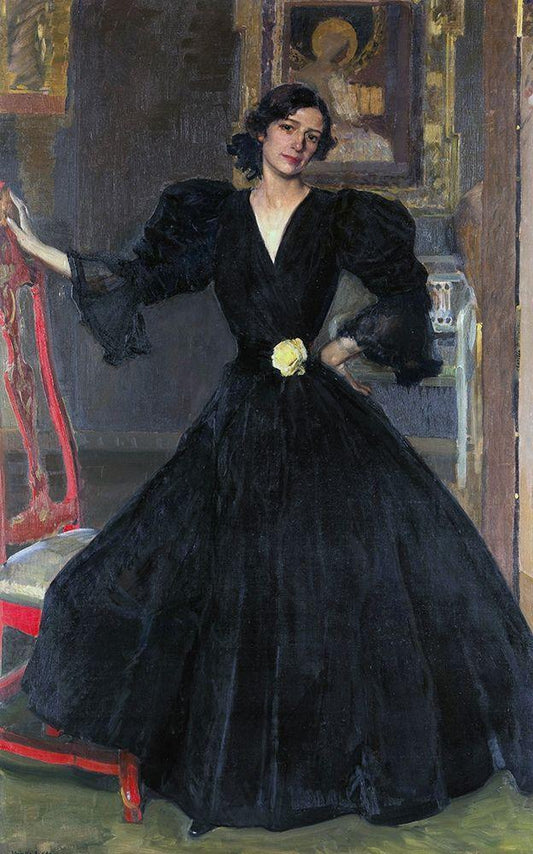 Clotilde in evening dress White Modern Wood Framed Art Print with Double Matting by Sorolla, Joaquin