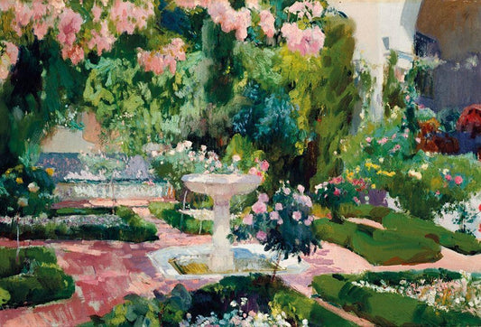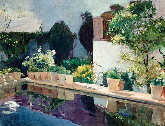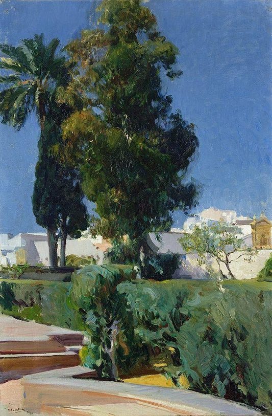 Royal Gardens in Seville White Modern Wood Framed Art Print with Double Matting by Sorolla, Joaquin