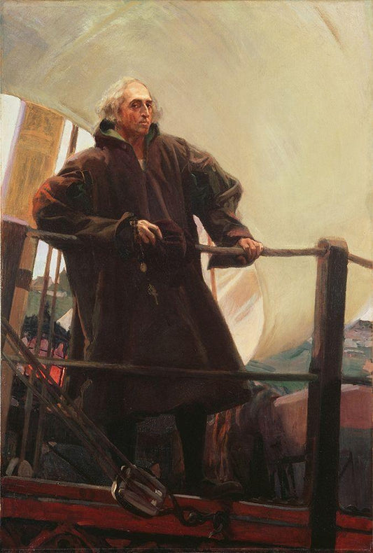 Christopher Columbus Leaving Palos White Modern Wood Framed Art Print with Double Matting by Sorolla, Joaquin