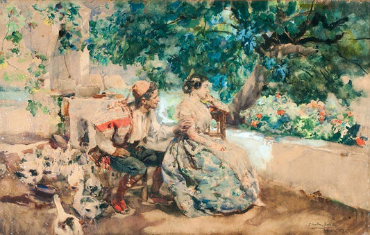 Valencians White Modern Wood Framed Art Print with Double Matting by Sorolla, Joaquin