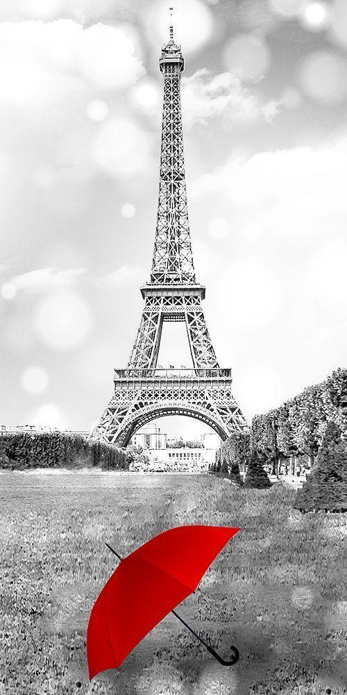 Red Umbrella Paris 1 White Modern Wood Framed Art Print with Double Matting by Allen, Kimberly