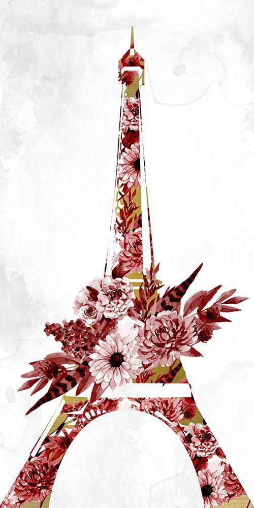Paris Fall Blooms 1 v2 White Modern Wood Framed Art Print with Double Matting by Allen, Kimberly