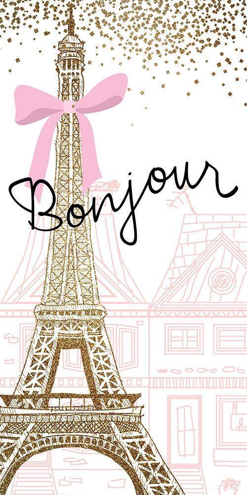 Bonjour Paris 3 White Modern Wood Framed Art Print with Double Matting by Allen, Kimberly
