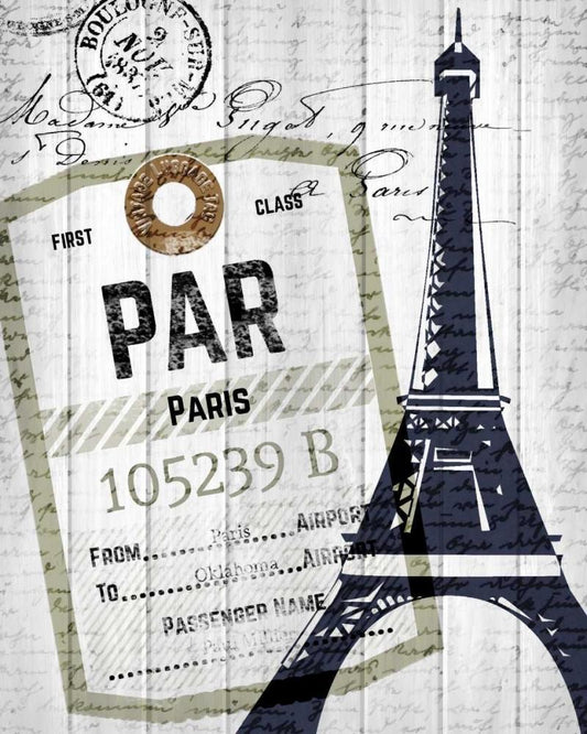 Paris Blue 1 White Modern Wood Framed Art Print with Double Matting by Kimberly, Allen