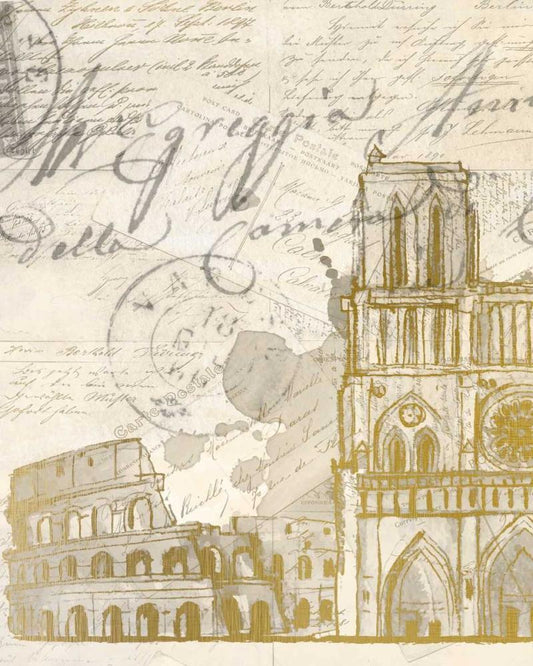 Watercolor Travel 1 White Modern Wood Framed Art Print with Double Matting by Kimberly, Allen