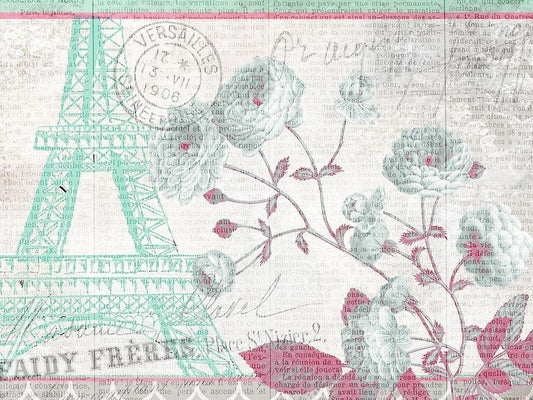 Mint and Pink Paris White Modern Wood Framed Art Print with Double Matting by Kimberly, Allen
