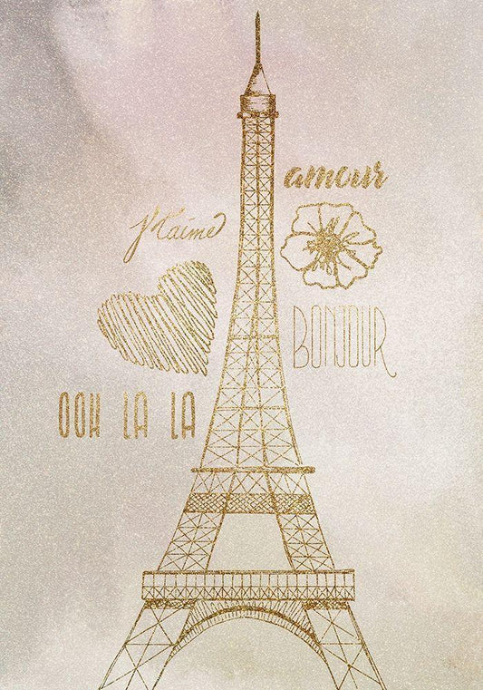 Eiffel Tower Gold White Modern Wood Framed Art Print with Double Matting by Allen, Kimberly