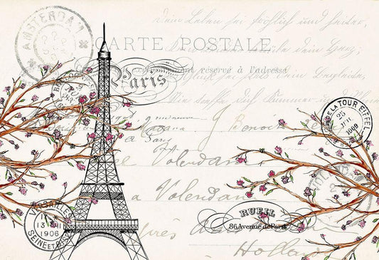 Postcards to Paris White Modern Wood Framed Art Print with Double Matting by Allen, Kimberly