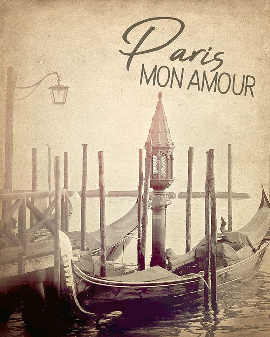 Gondola Paris 1 White Modern Wood Framed Art Print with Double Matting by Allen, Kimberly