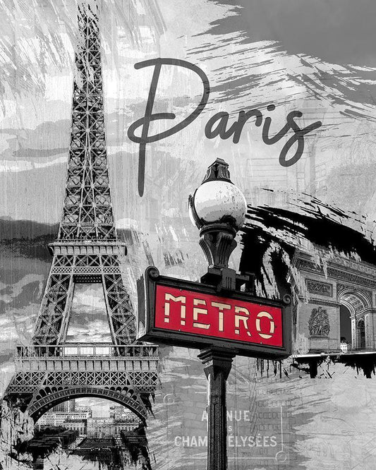 Paris Metro White Modern Wood Framed Art Print with Double Matting by Allen, Kimberly