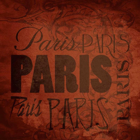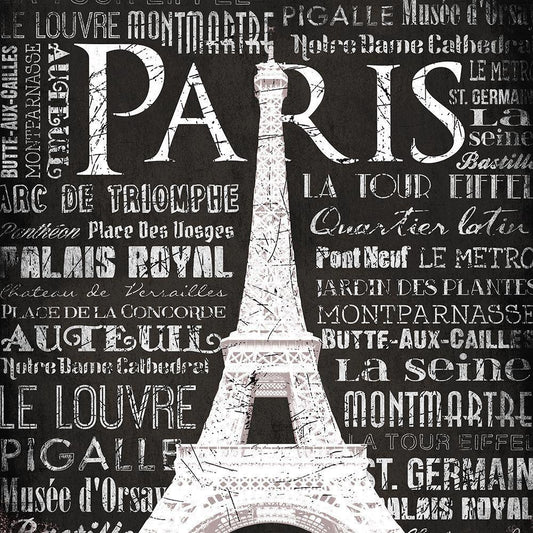 Paris Text White Modern Wood Framed Art Print with Double Matting by Grey, Jace