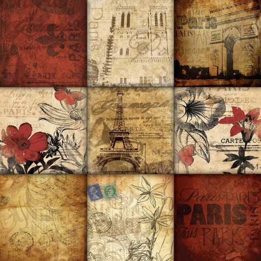 Paris 9 patch White Modern Wood Framed Art Print with Double Matting by Grey, Jace