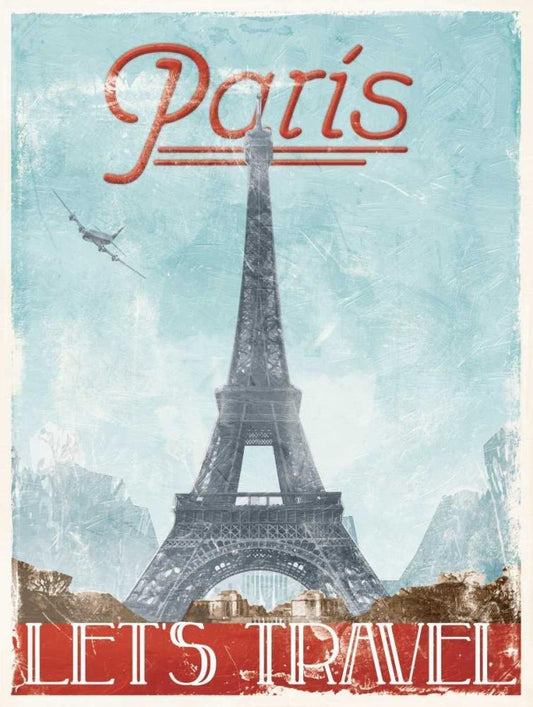 Lets Travel To Paris White Modern Wood Framed Art Print with Double Matting by Grey, Jace