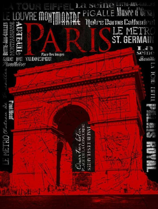 Paris Type 2 RED White Modern Wood Framed Art Print with Double Matting by Grey, Jace