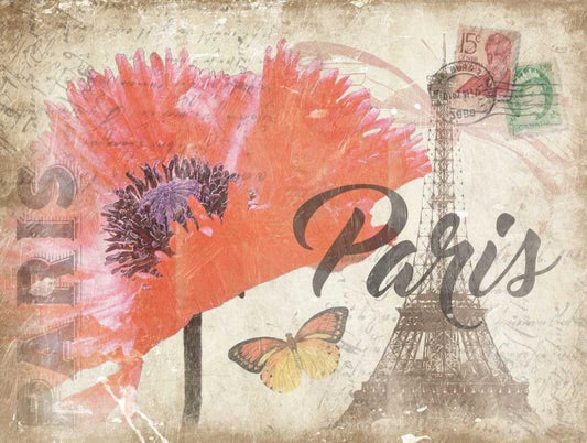 Paris Postal White Modern Wood Framed Art Print with Double Matting by Grey, Jace