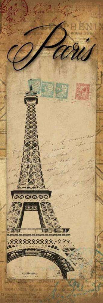 Paris Postal White Modern Wood Framed Art Print with Double Matting by Grey, Jace