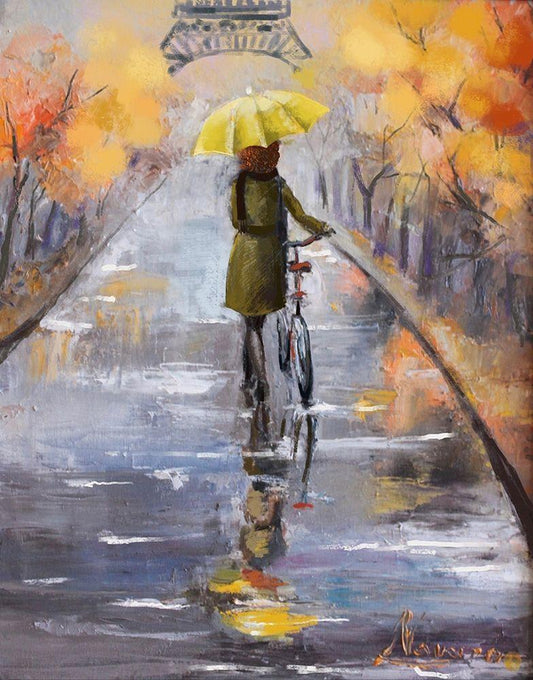Rainy Day Paris White Modern Wood Framed Art Print with Double Matting by Boho Hue Studio
