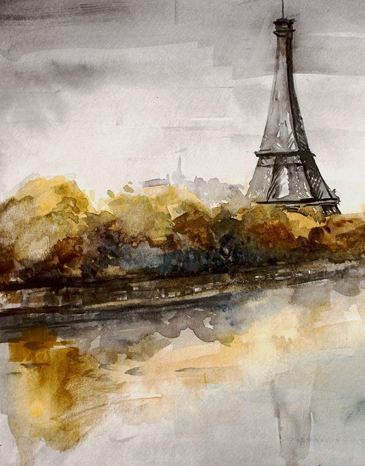Eiffel View White Modern Wood Framed Art Print with Double Matting by Boho Hue Studio