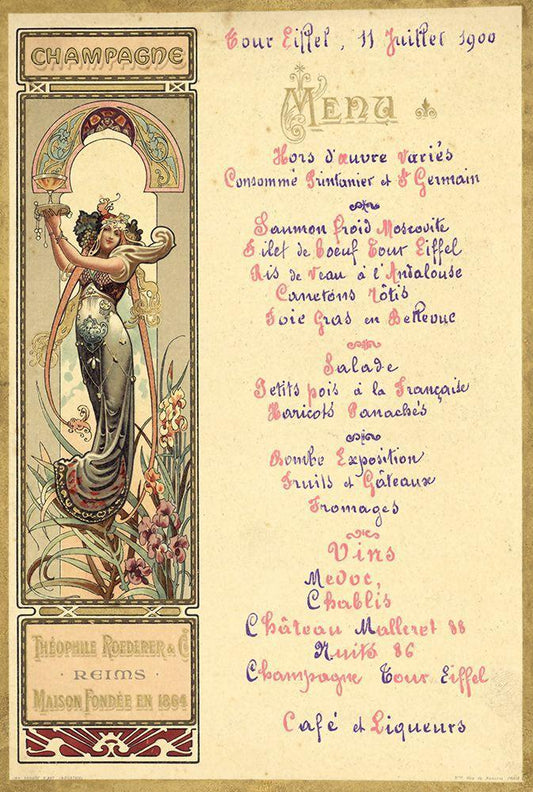 Paris Nouveau Menu White Modern Wood Framed Art Print with Double Matting by Vintage Apple Collection