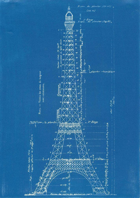Eiffel Tower Blueprint White Modern Wood Framed Art Print with Double Matting by Vintage Apple Collection