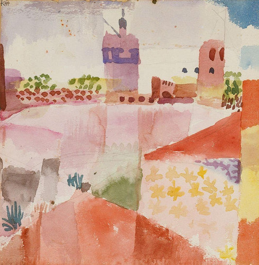 Hammamet with its Mosque 1914 White Modern Wood Framed Art Print with Double Matting by Klee, Paul