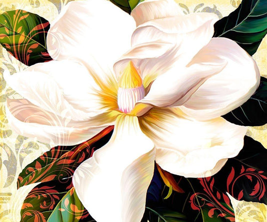 Paris Magnolias II White Modern Wood Framed Art Print with Double Matting by Lavoie, Tina
