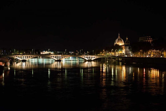 River Rhone at Night I White Modern Wood Framed Art Print with Double Matting by Berzel, Erin