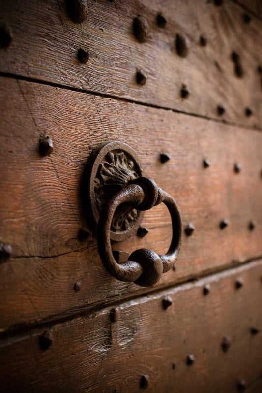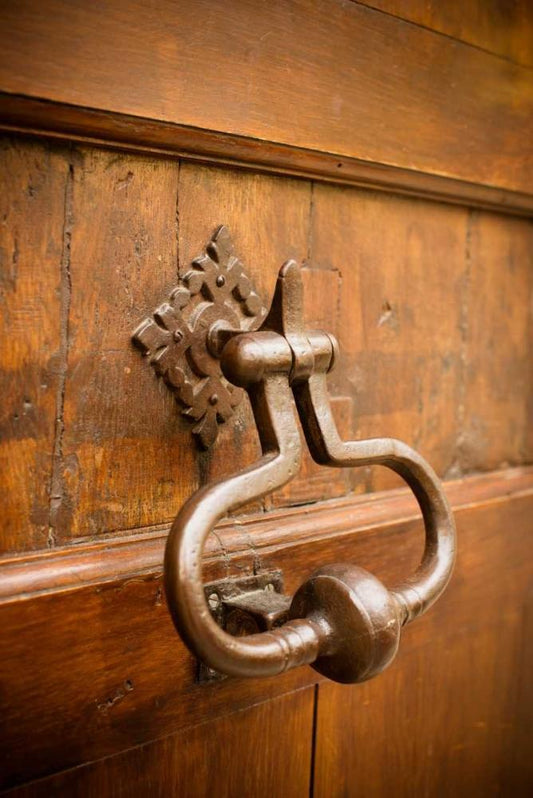 French Door Knocker I White Modern Wood Framed Art Print with Double Matting by Berzel, Erin