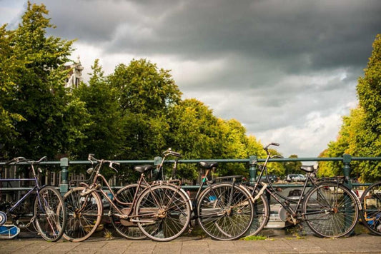 Dutch Bicyles White Modern Wood Framed Art Print with Double Matting by Berzel, Erin